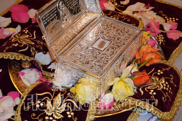 Πλήθος πιστών περίμεναν υπομονετικά μαζί με τον Ιερό Κλήρο με αισθήματα ευλάβειας κάτω από βροχόπτωση την έλευση του Ιερού Λειψάνου του Αγίου Αρσενίου του Καπαδόκου ο οποίος ήταν πνευματικός πατέρας του Αγίου Παισίου του αγιορείτου.